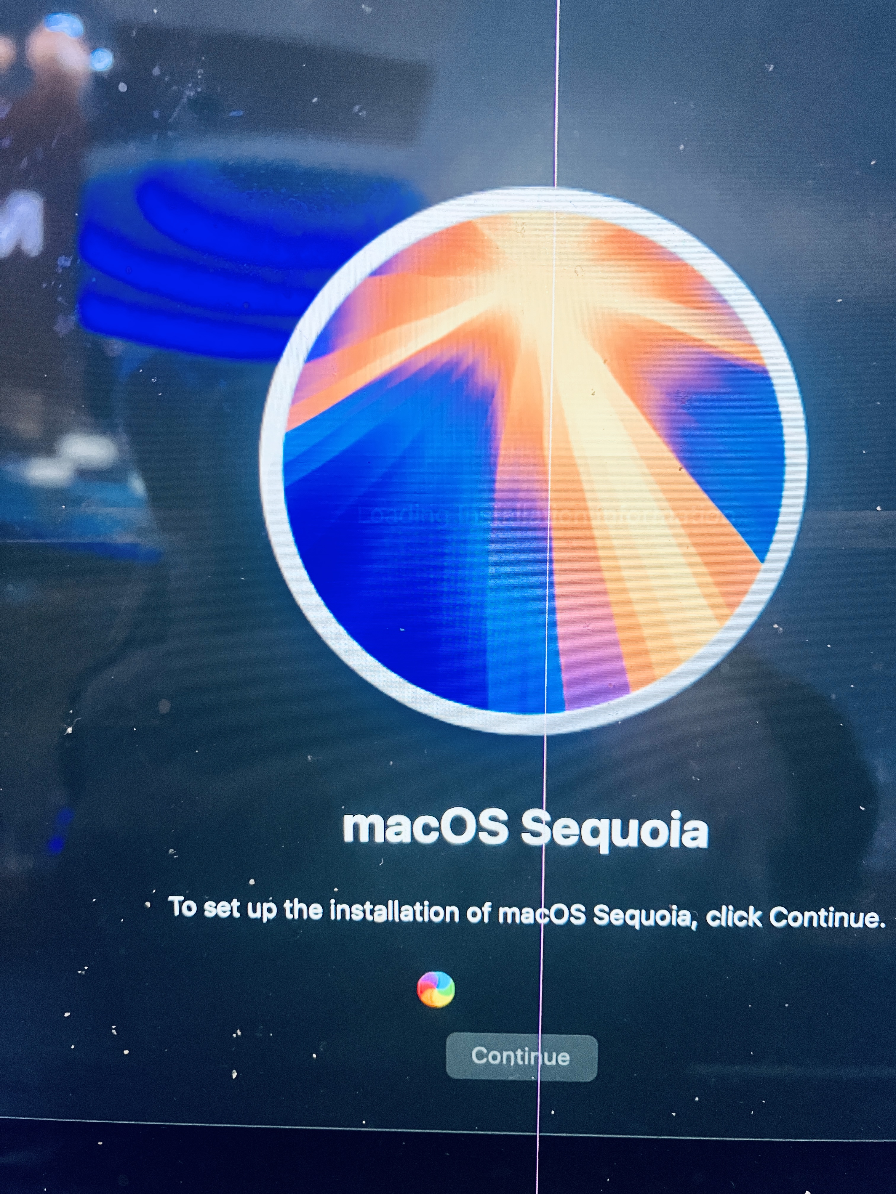 Прежде этого цветного колесика при переустановке Макбука не было. Оно было, но не при переустановке. И это означает, что от Макбука надо избавляться. Он перепрошит. На глубинном уровне. - (22:35)